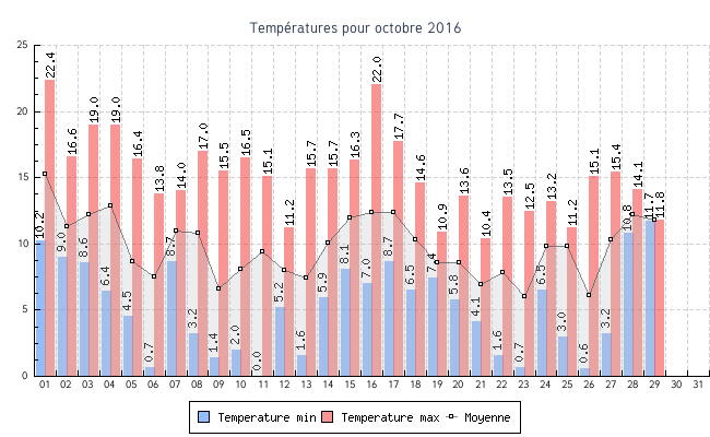 | 10 | 2.0 °C | 16.5 °C | 8.1 °C | 0.6 km/h (9.0 km/h) | NO |